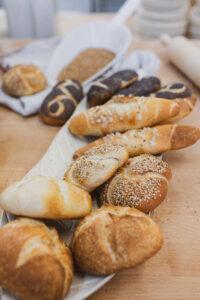 Wir vermahlen unser eigenes Getreide zu Mehl und backen feinstes Sauerteigbrot, handgemachte Semmeln und Mohnflessern. Wir verwenden zu 100% Biozutaten. Jedes Stück ein Unikat. Zur unsere Spargelhauptsaison bieten wir unsere Produkte von Donnerstag bis Sonntag in unserem Hofladen an. Außerhalb der Hauptsaison hat unser Hofladen jeden Samstag geöffnet.